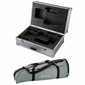 This transport case set is suitable for the Bresser Messier MCX-102 and MCX-127 telescopes. The deluxe carry case is perfectly suitable for the MCX-102 / MCX-127 GoTo telescopes and offers reliable protection for your equipment. This is a high quality case made from alumunium with reinforced steel edges. A sturdy carrying handle and metal fasteners withstand even the toughest outdoor use. Also included is a sturdy and padded transport bag made of nylon for the field tripod plus accessory tray.