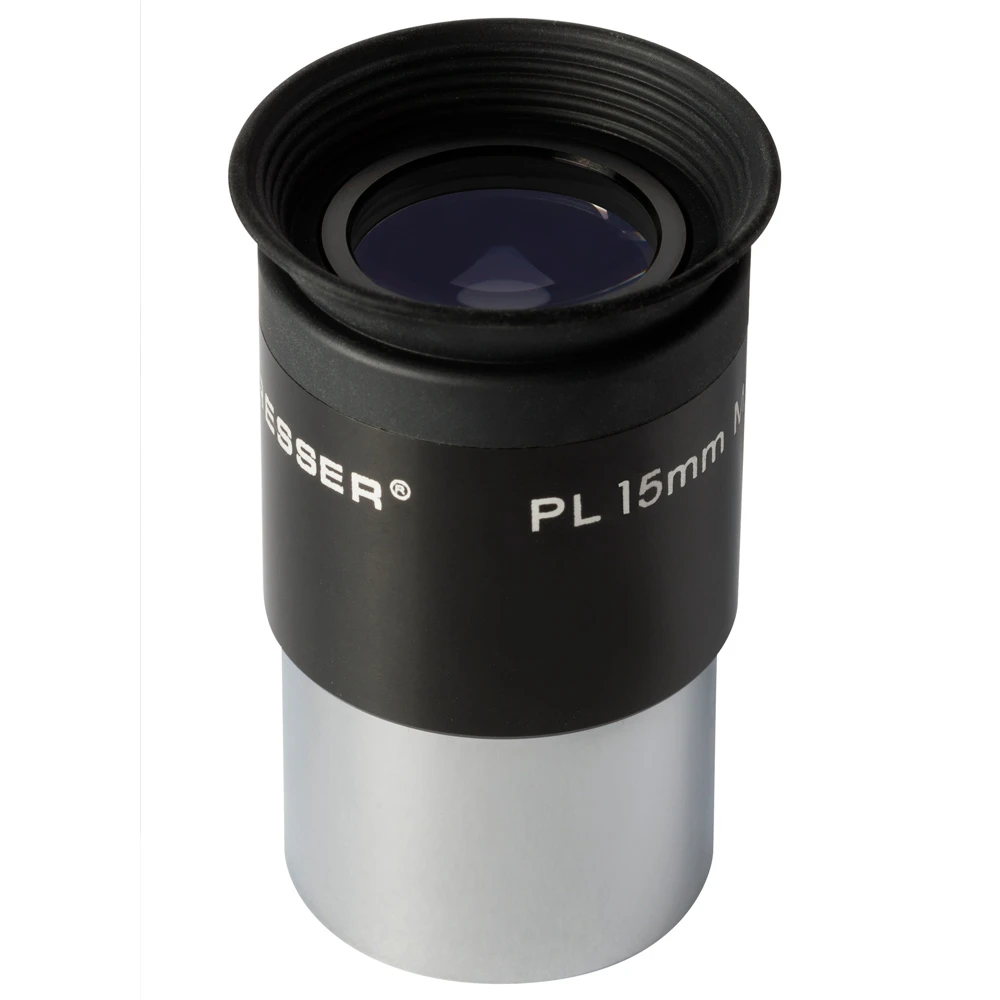 All the Bresser Plossl range of eyepieces provide sharp and high contrast images due to their 4 element design. All lenses have fully multicoated surfaces which helps to prevent internal reflections. Every eyepiece is equipped with a foldable rubber eyecup to avoid stray light from the sides and the inner eyepiece shaft is carefully blackened. Housing and eyepiece shaft are completely made from metal, no plastic is used. Filter thread for use with colour and light pollution filters. Plossl eyepieces offer a much better image quality than the very simply made Kellner and Huygens eyepieces that are often provided with beginners telescopes, making this eyepiece an ideal low cost upgrade.