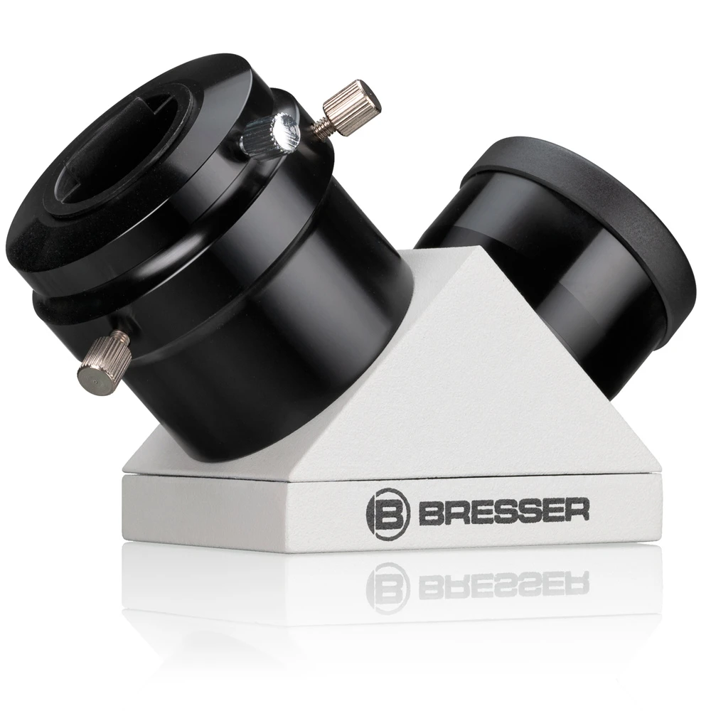 A very good diagonal mirror for telescopes with 2″ focuser and for the BRESSER Messier telescopes with a 2.5″- HEX focuser. Enables the use of eyepieces and accessories with 2″ barrel, so that a wider field of view can be reached. A larger light beam and a comfortable observation position is achieved by this 2 inch zenith mirror. Especially for use with refractors and for zenith observations a useful accessory. The clamping ring is made of brass, so there will be no scratch marks on your high-quality eyepiece. The precise clamping is another advantage. The BRESSER 2″ Diagonal Mirror is completely made of metal and has a very accurate flat mirror. The di-electrical coating delivers a 93% reflectance and is very durable against environmental influences.
