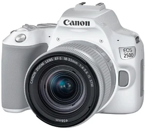 Canon EOS 250D Digital SLR Camera With The Canon EF-S 18-55mm F4-5.6 IS STM Zoom Lens. 24.1 Million Effective Pixel Digital SLR With An APS-C Sized CMOS Sensor. DIGIC 8 Processor. Accepts EF And EF-S Lenses. Compact And Lightweight Design. Stunning High Resolution Images And 4K Movies. Dual Pixel CMOS AF Live View With Eye Auto Focus. High Resolution 3.0 Inch Clear View LCD II Vari Angle Touch Screen. Guided User Interface Helps You To Choose The Right Settings For The Effect You Want To Create. Up To 5 Frames Per Second Continuous Shooting. Rechargeable Lithium Ion Battery. Uses SDHC / SDXC Memory Cards. Accurate AF With Nine Point Autofocus. Built In Bluetooth And WiFi Connectivity.