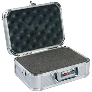 The Dorr Aluminium 20 small case is an attractive aluminium case which offers strong protection for all types of equipment. It comes complete with a pick and pluck foam insert and can be locked via the combination lock for added security. The case can be carried either by hand or on the shoulder by using the wide shoulder strap included. Internal dimensions of 26 x 18.5 x 7 cm (L x W x D). External dimensions of 28 x 23 x 11.5 cm (L x W x D). Weighs 1.3kg. Lid is just over an inch deep (3cm).