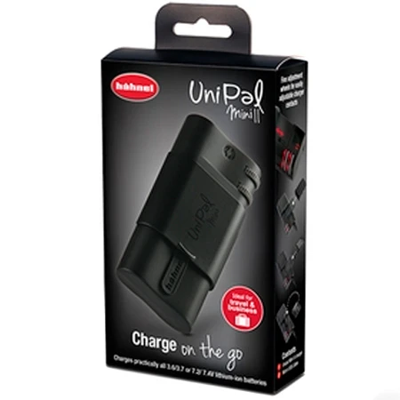 The Hahnel UniPal Mini II is an all in one battery charger suitable for practically all lithium ion 3.6v / 3.7v / 7.2v / 7.4v rechargeable battery packs. Easy to use with no adapter plates, just adjust the pins using the fine adjustment wheels to suit your battery contacts. Compact and lightweight. Charging time of approx 2.5 hours per 1000mAh. Includes a Micro USB cable (no power supply included). The UniPal Mini II can also be used with power banks, 12V car cigarette USB adapters and USB power sources (none included).