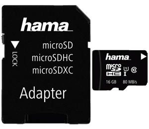 Hama 16GB MicroSDHC UHS Class 1 UHS-I 80MB|sec + SD Adapter