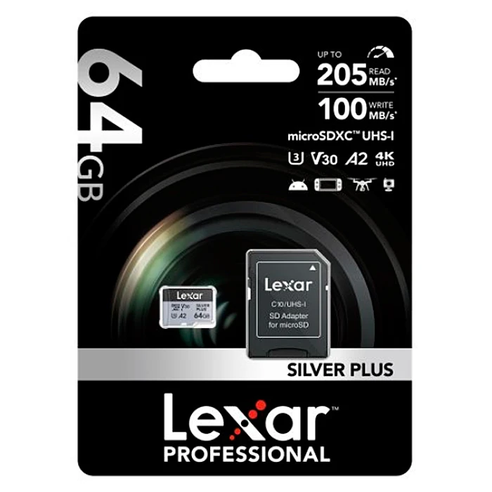 Lexar Pro Silver Plus 64GB MicroSDXC Card + SD Adapter (205MB/s)