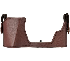 Olympus CS-51B leather body jacket in Brown. The Olympus CS-51B is a genuine Olympus leather body jacket style camera case designed for use with the Olympus E-M10 Mark III digital camera. Perfectly fits the design of the Olympus E-M10 Mark III camera. Securely fixed to the camera by a screw into the cameras tripod socket. Ideal for use with the matching genuine leather CSS-S109 LL strap (not included). Compliments the classic-modern look of the camera body while protecting the camera body from scratches and knocks.