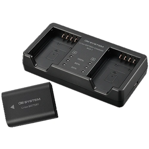 The SBCX‑1 is a kit coming with one BLX‑1 Battery and the BCX‑1 Battery charger. This is the perfect accessory for your OM‑1 as you get a second battery and the charger to charge both battery in roughly 150 min. As it is equipped with USB‑C port you either simply use the F‑7AC, which comes with your OM‑1, or any other USB‑C mains adapter to power it.