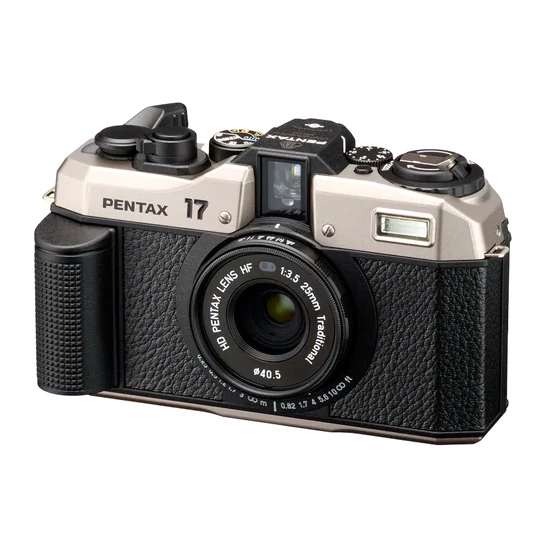 The PENTAX 17 features a newly developed 25mm F3.5 fixed-focal lens (equivalent to a 37mm lens in the 35mm format). Based on the optics incorporated in the acclaimed PENTAX Espio Mini (marketed in 1994), it has been redesigned to fit perfectly in the half-size format. It is also treated with HD (High Definition) coating — a highly acclaimed multi-layer coating — to optimize the clarity and sharpness of half size pictures. Using the lens used in the RICOH Auto Half (a best-selling half-size model first marketed in 1962) as a reference, the angle of view and focal length were selected to make casual, everyday picture-taking simple and flawless.