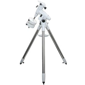 This sturdy heavy duty equatorial mount features engraved aluminium setting circles, bubble level, latitude adjuster with micrometer scale, azimuth polar-alignment adjuster and manual slow motion tracking controls. Payload capacity of up to 9kg. Adjustable stainless steel pipe tripod with accessory tray. Optional polarscope is available for aiding in polar alignment. Optional single and dual axis D.C. motor drives can be installed for auto tracking purposes.
