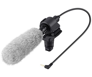 The Sony ECM-CG60 is high performance shotgun type microphone for cameras and camcorders which have a 3.5mm microphone input socket. High-performance, monaural microphone with supercardioid directivity improves targeting of sound. Monaural microphone picks up targeted (not surrounding) sound. Microphone holder included absorbs zooming noise from the camera. Powered by either a single AAA battery or plug in power. More compact and approx 15% shorter than the older ECM-CG50 model. The microphone holder attaches directly to the Multi Interface accessory shoe.