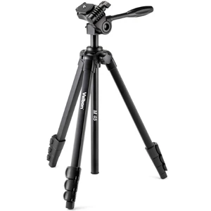 The Velbon M45 is part of the M-Series family of tripods, which feature a clean and simplified design. Thanks to the use of modern materials, they are lightweight but sturdy which makes them ideal for travelling. The M45 includes a 3-way photo panhead with quick release platform (QB-32). The legs are 4-section, with Quick-Lever locking for speedy extension and folding. A special new rivet system ensures long term durability where the legs meet the tripod body. There is a sliding centre column to allow fine height adjustment and a spirit level to ensure all legs are level – especially useful on uneven ground. The M45 also comes complete with a carry case.
